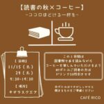 2025年11月15日 / 最終更新日時 : 2025年11月19日 kiaora-hiroba 仮予約 11/15 CAFE RICO \11月15日(土) 09時30分~14時30分/ CAFE RICO 読書の秋にピッタリなハンドドリップコーヒーはいかがですか? 朝焙煎したカラダもココロも豊かになる珈琲を届けてくれる “CAFE RICO”がキオラス […]